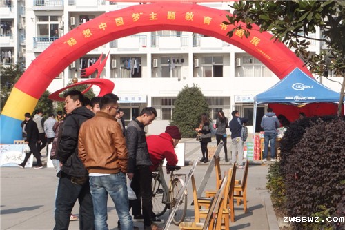 11月28日中午,我院学生会宣传部在生活区腾飞广场举办“畅想中国梦”主题画展,近30幅学生书画作品参展。画展同时邀请了近20幅教职工书画作品助展。学生书画作者以作品表达了“中国梦·我的梦”的情怀。画展吸引了部分师生驻足欣赏。