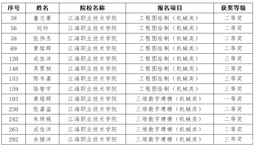 智能装备与交通技术学院荣获工程图绘制(机械类)个人二等奖4项、三等奖4项;三维数字建模(机械类)个人一等奖1项、二等奖3项、三等奖1项。