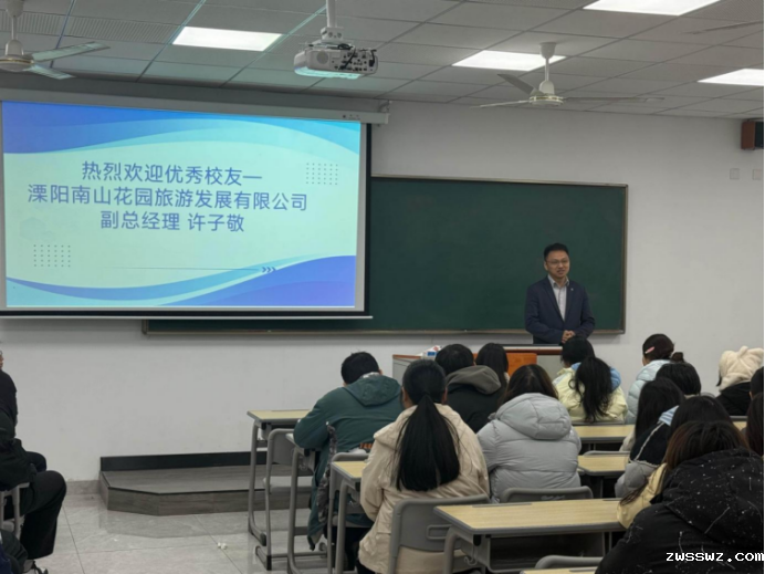 11月27日,人文旅游学院邀请溧阳南山花园旅游发展有限公司副总经理、韩贸062班校友许子敬重返母校,开展经验分享会。许子敬深情回顾在江海的求学经历,感恩母校教育为职业生涯奠定坚实基础。他结合自己从基层到高管的成长路径,分享了文旅行业的实战经验,并围绕行业趋势、人才需求转变等话题展开分析,指出当前行业更需要具备创新策划、市场运营等复合能力的人才。在互动环节,他耐心解答同学们关于实习、就业等方面的疑问,并以“脚踏实地、持之以恒”勉励学弟学妹。学院副院长刘涛及学生代表参加活动。