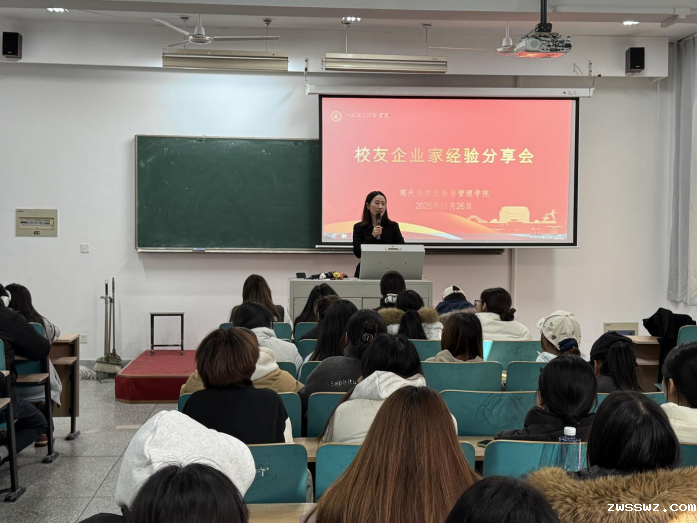 11月26日,数字经济与管理学院邀请优秀校友、顺远大健康产业集团创始人孙健权返校,举办“等风来不如追风去”专题分享会。孙健权从校园学习、职场历练到成功创业三个阶段展开分享,回顾了在校期间的学习时光,强调了扎实的专业基础对职业发展的重要性;针对同学们关心的职场竞争与职业发展问题,他建议“持续学习、找准赛道、勇于尝试”。学生们就“实习岗位选择”“考证规划”等问题与校友深入交流。学院副院长徐芹、党总支副书记任大娟、校企合作办公室及师生代表参加活动。